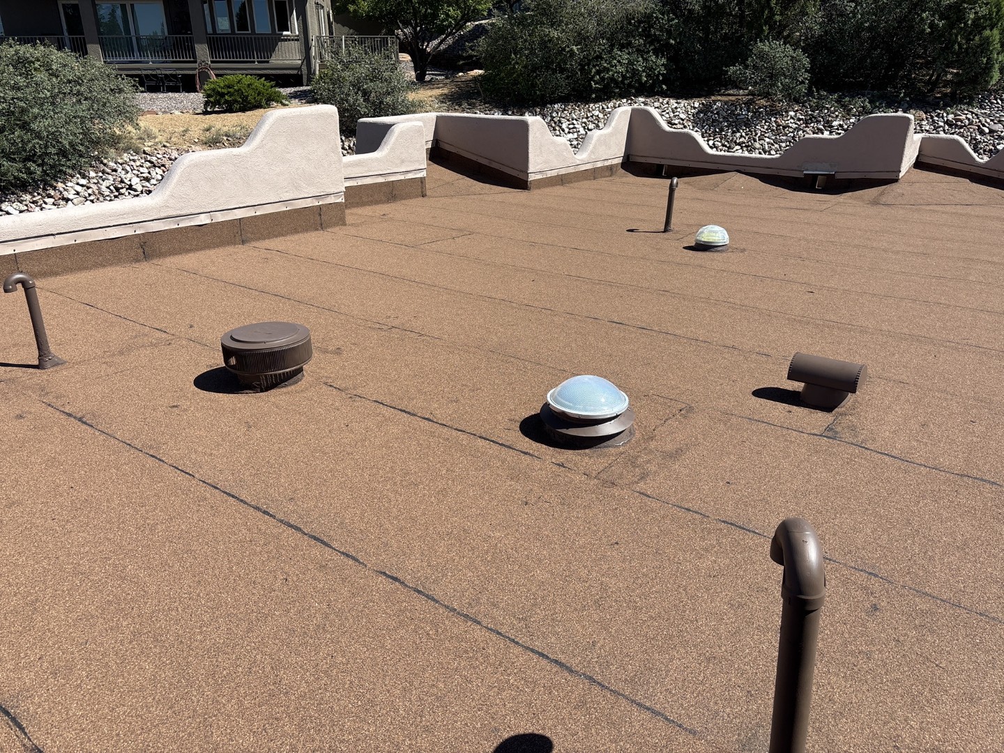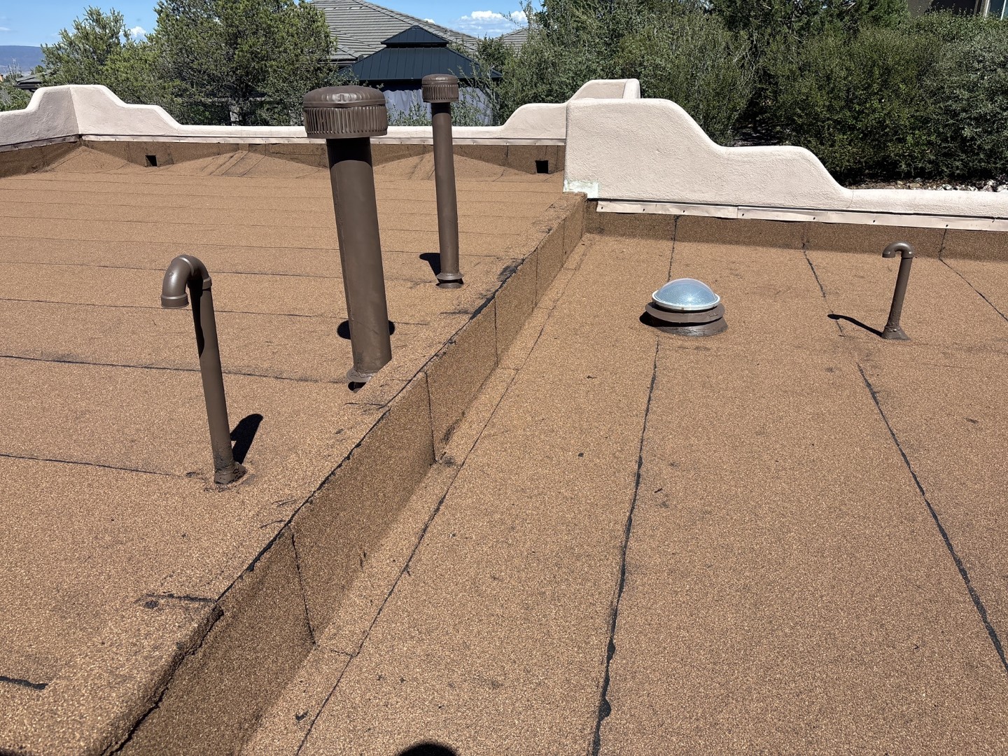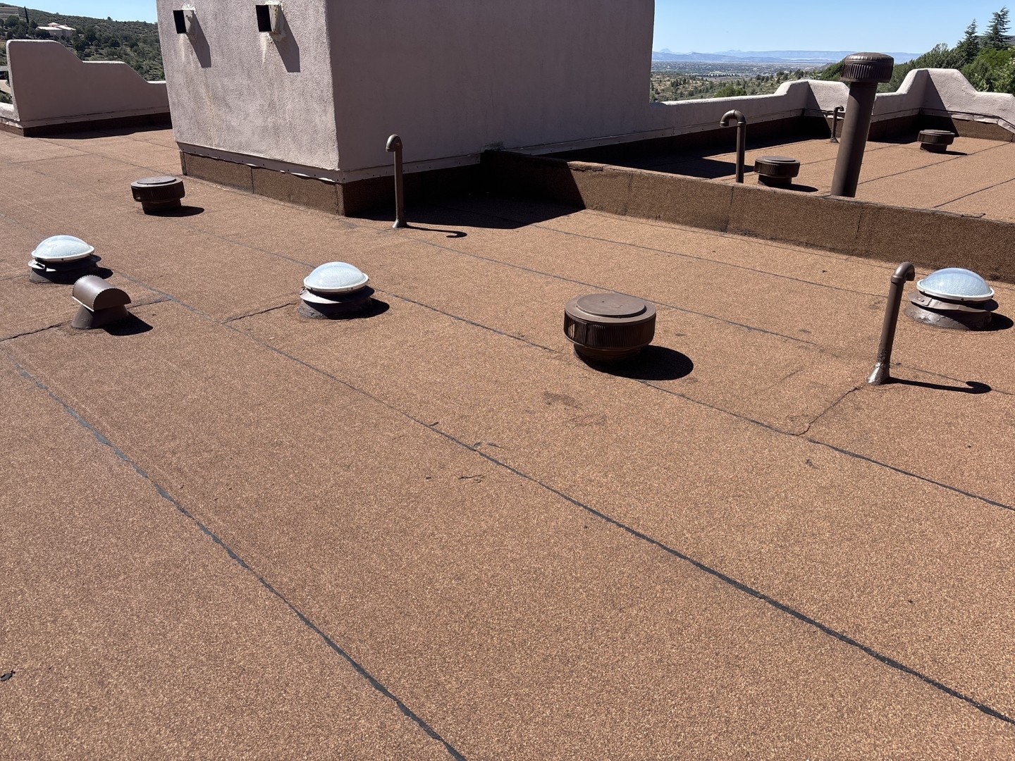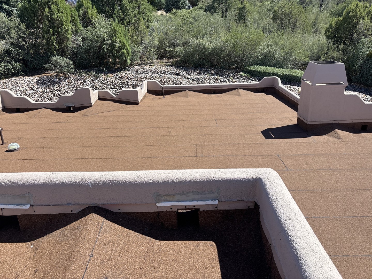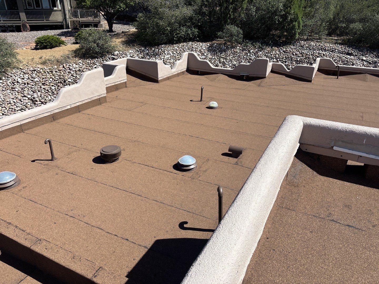 Heritage Roofing completed a full roof installation restoration of the customer’s Torch Down roof in Prescott, AZ. Our team identified and stopped multiple active leaks that were causing water intrusion and damage. After addressing problem areas and removing compromised materials, we installed an entirely new torch down roofing system to ensure long-lasting protection and durability. The new roof provides a seamless, watertight surface designed to withstand the elements and extend the life of the building.